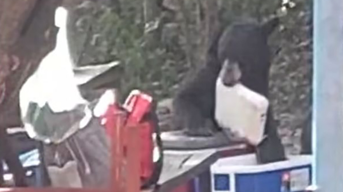 Un oso se dio un festín al robar una charola con carne que había llevado una familia para preparar una carne asada, en Bustamante, Nuevo León.