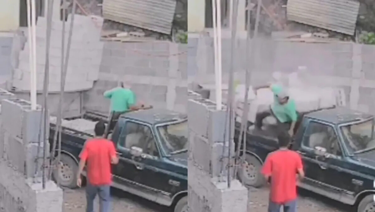 Video muestra el momento en que un albañil se salva de ser aplastado
